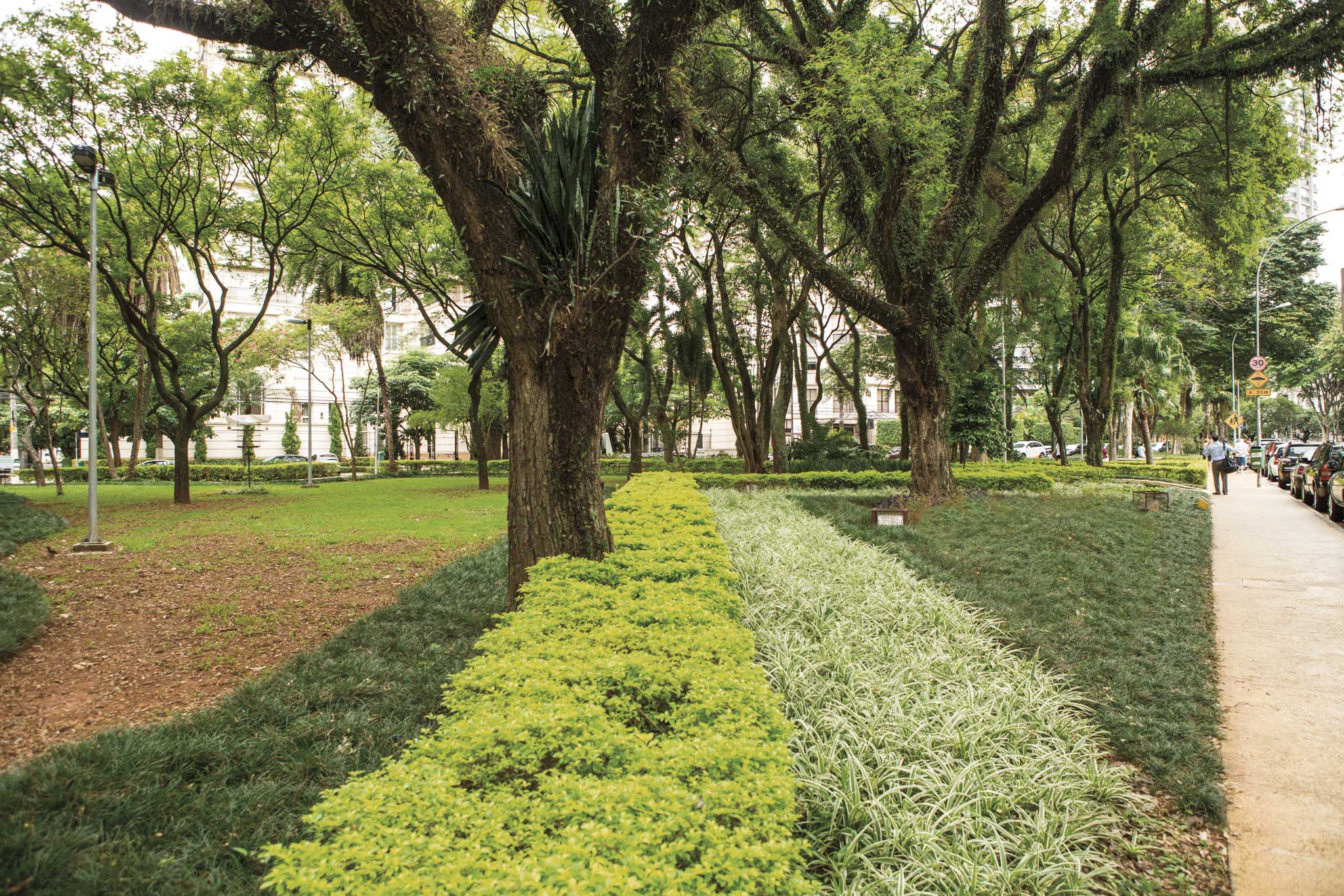 Além do isolamento por não servir de passagem ou acesso para o trânsito, conta com uma praça especial (Praça Carlos Gardel) com caminhos sombreados, árvores frondosas, pista de caminhada e um monumento em homenagem aos ex-combatentes brasileiros que lutaram na 2ª Gerra Mundial.