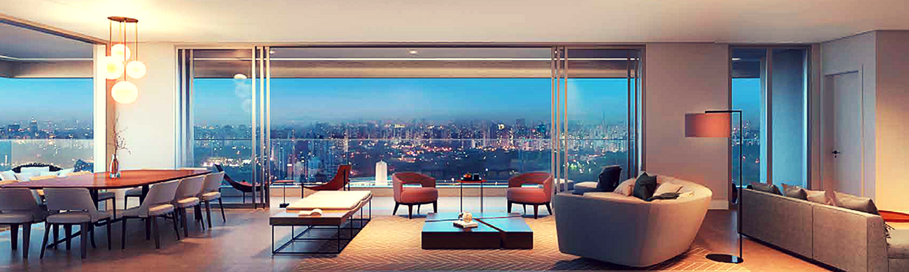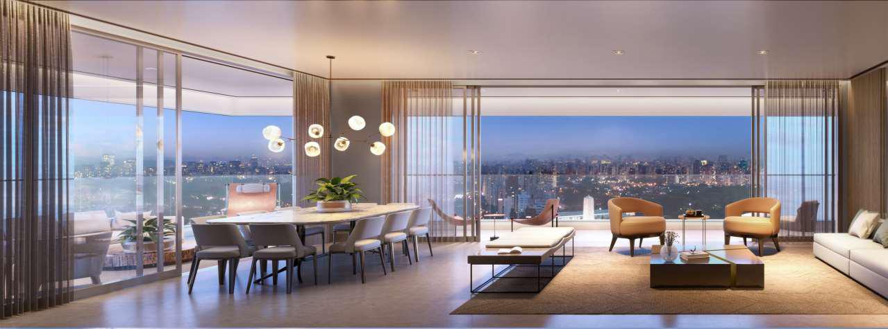 Planta Panoramic com 332m² sendo 4 Amplas Suítes com Closet, Terraço Gourmet com vista para o Parque Ibirapuera, Depósito Privativo e 5 Vagas de Carro.